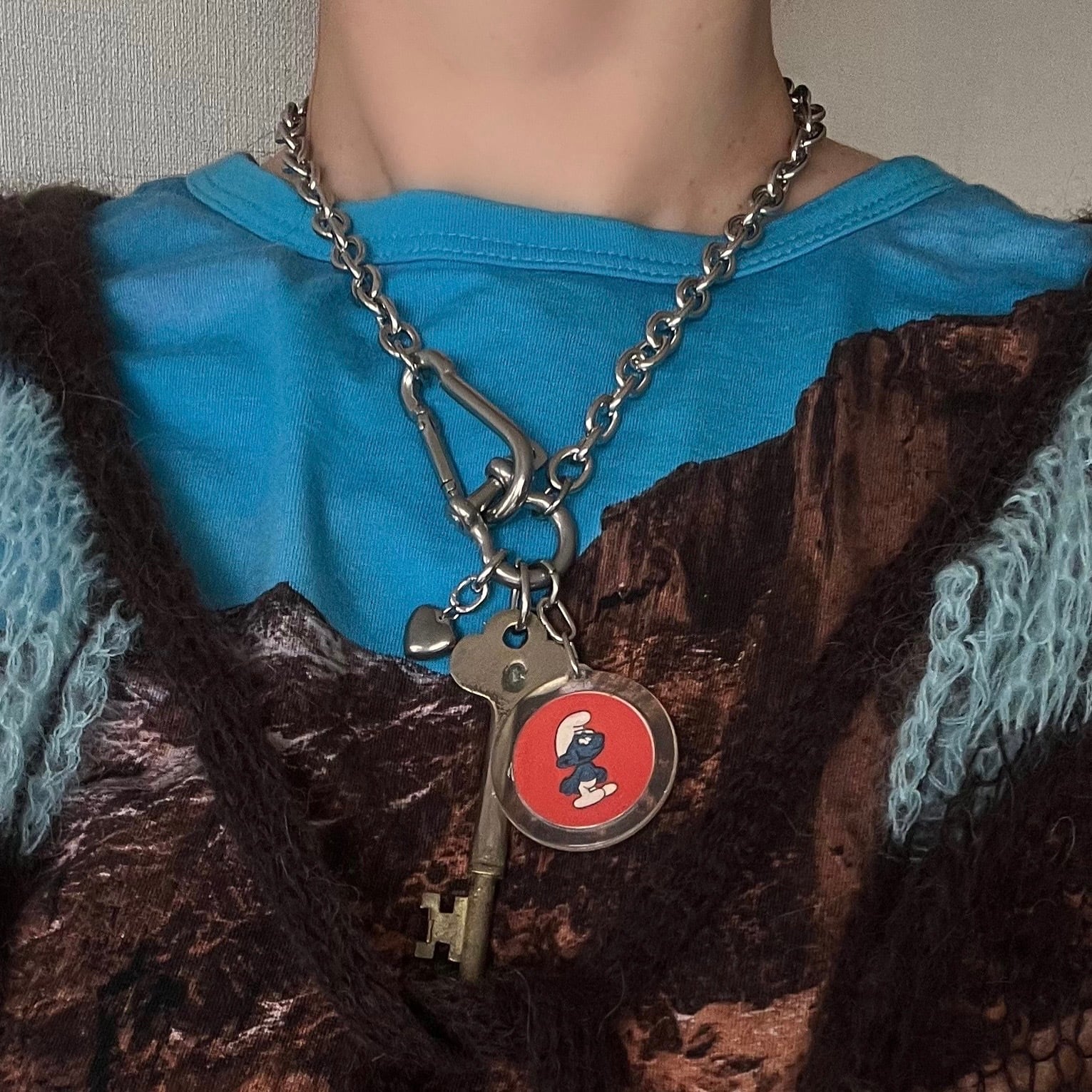 太めのチェーンがしっかりとした存在感を放ち、一つだけでも着けるだけでコーディネートが引き締まります。