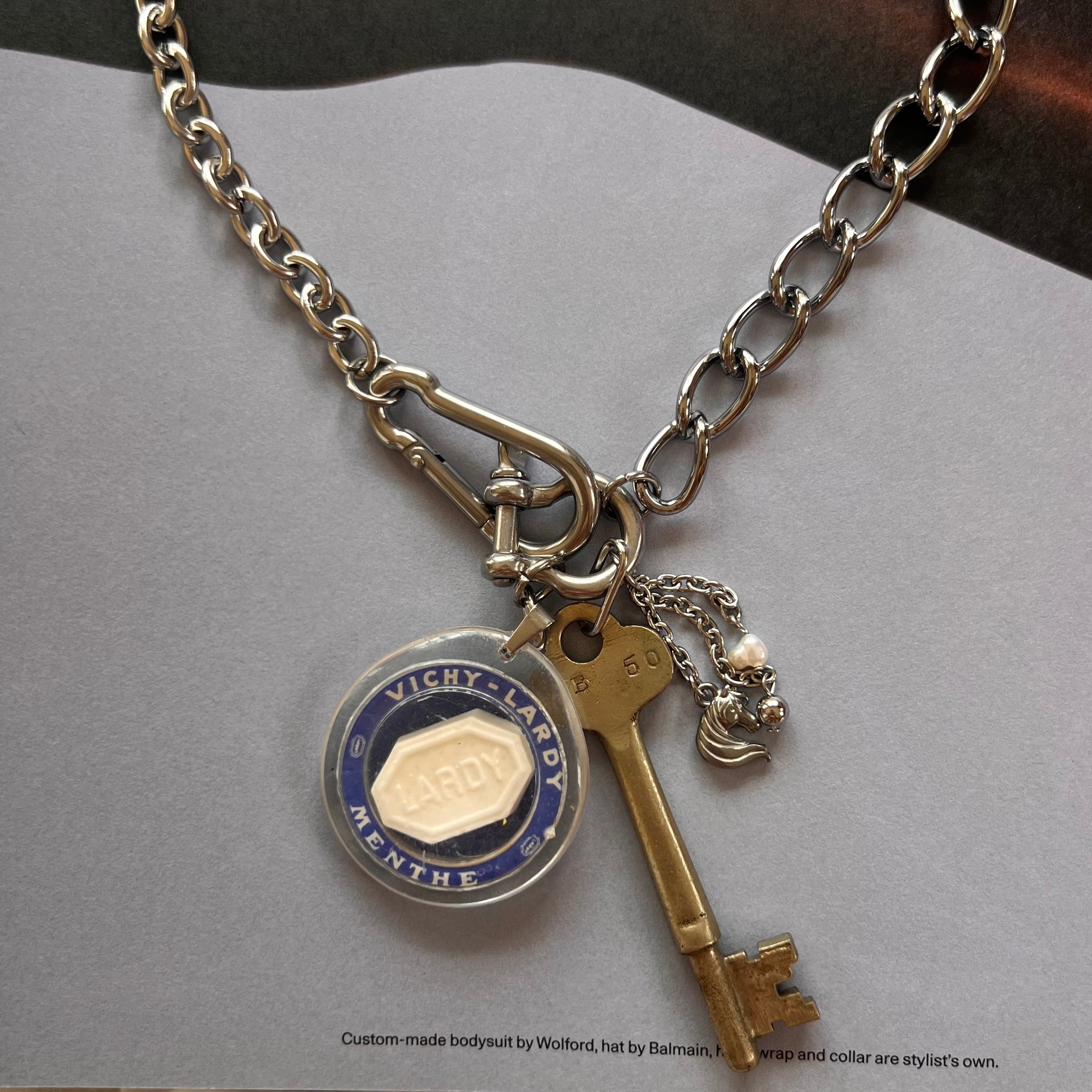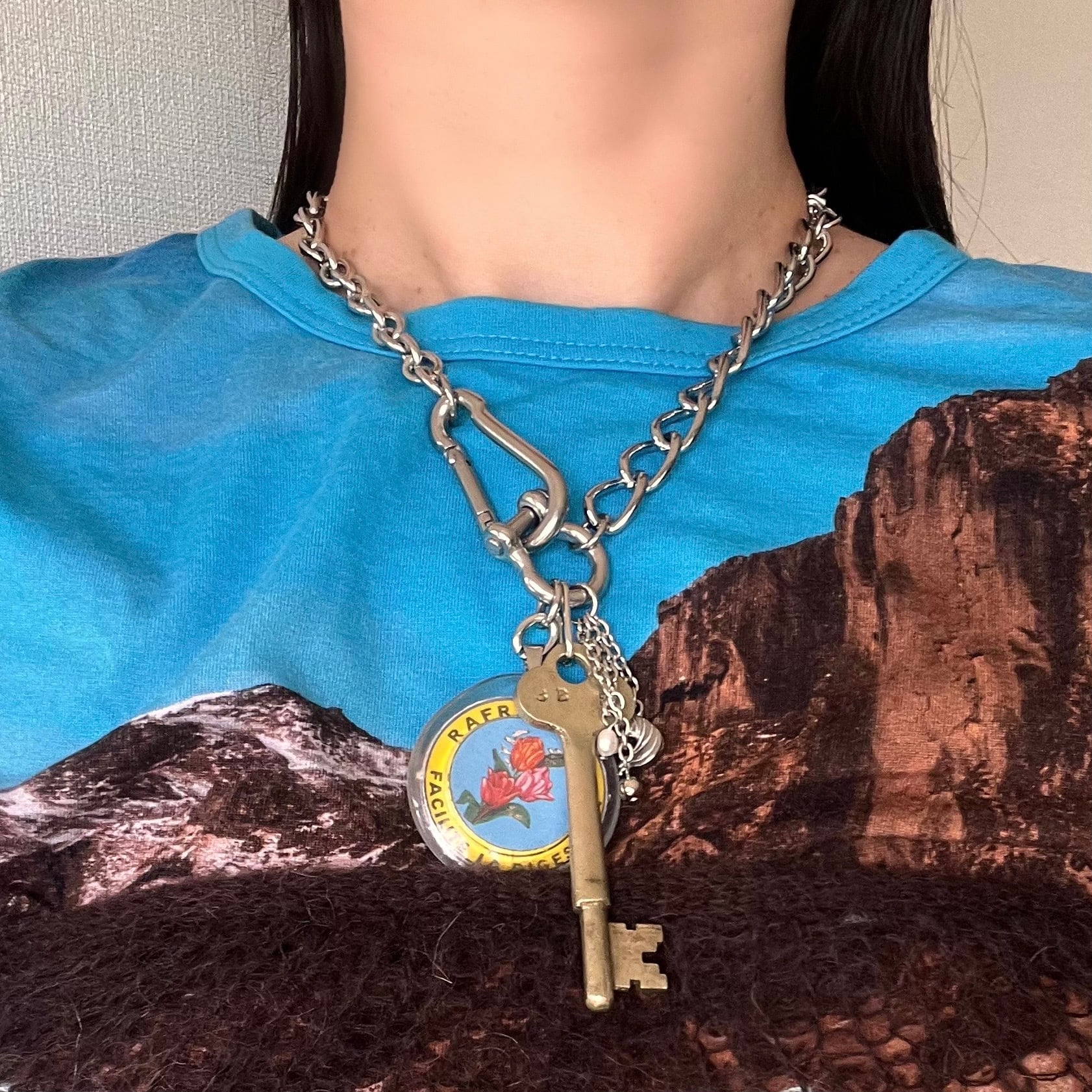 太めのチェーンがしっかりとした存在感を放ち、一つだけでも着けるだけでコーディネートが引き締まります。