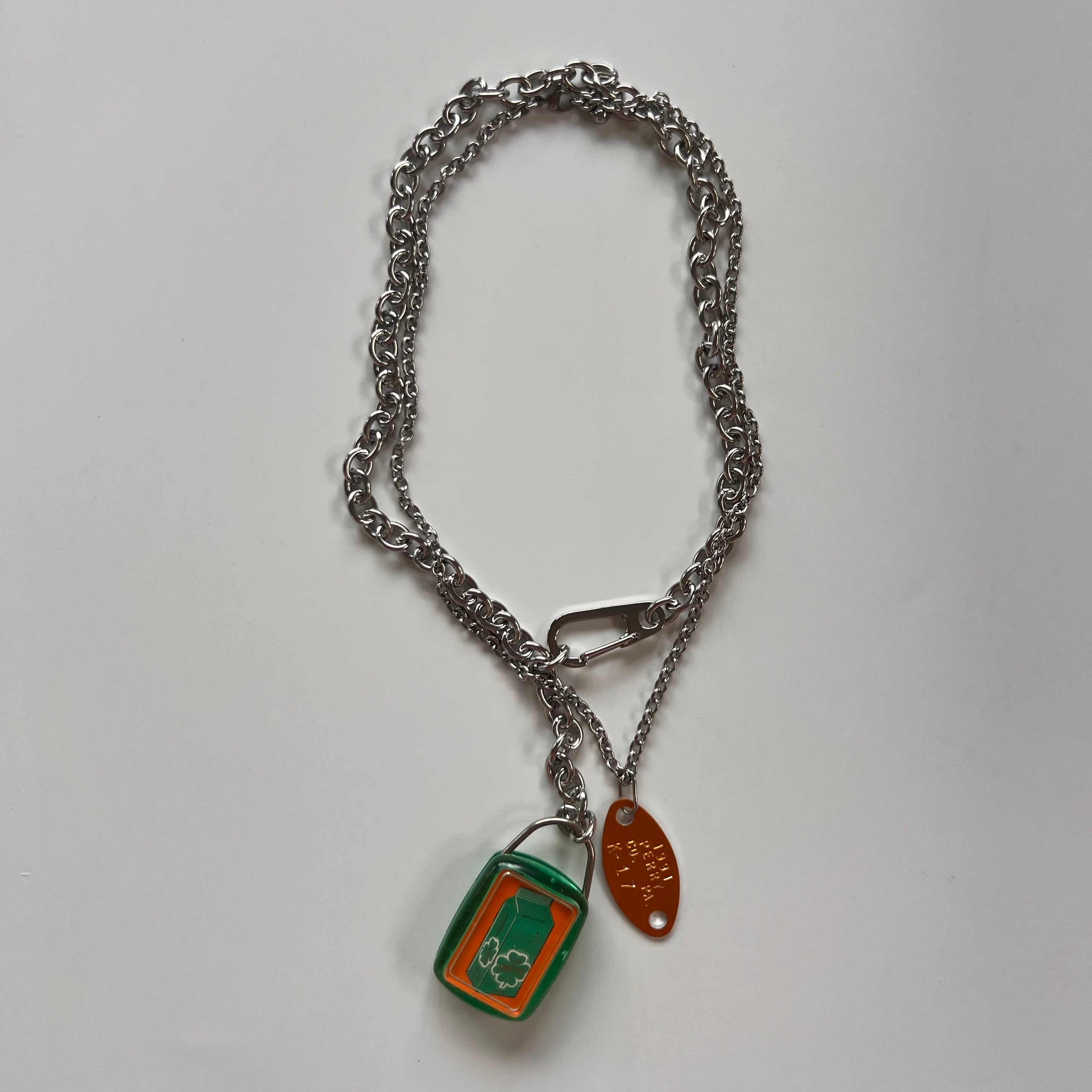 こちらは2点セットとなっており、お好きな位置で留め具をとめられるので長さやつけ方を変えてお楽しみいただけます。