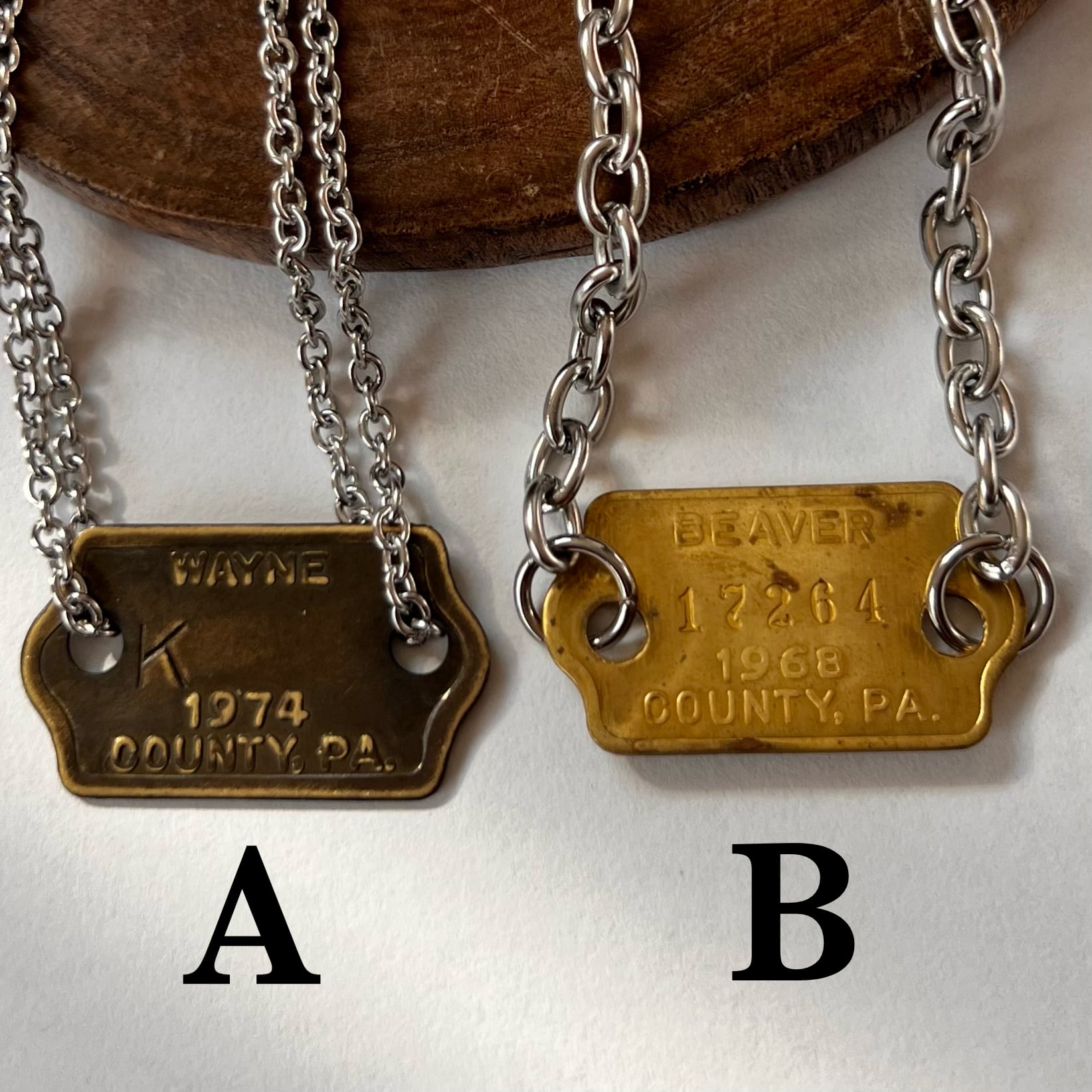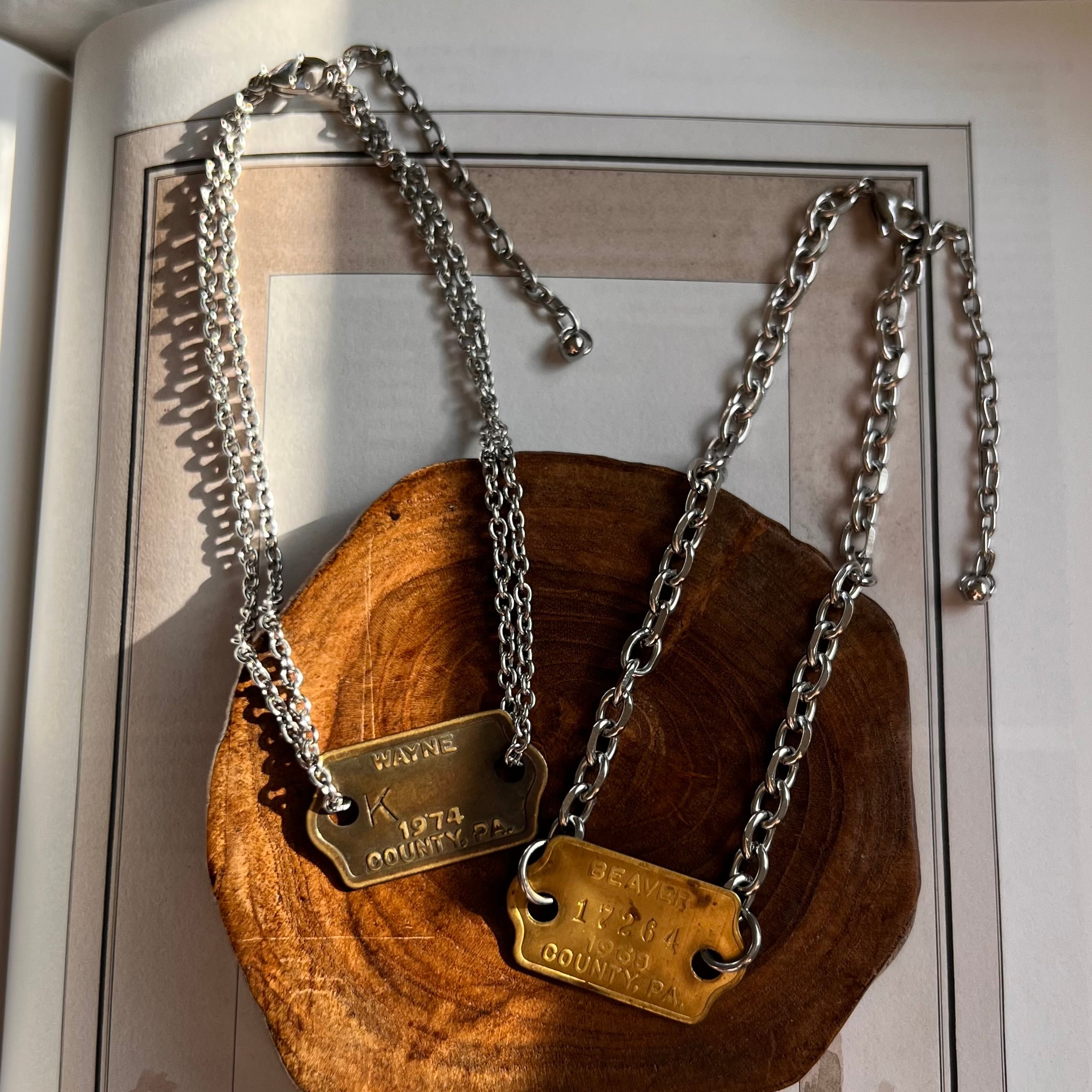 今回はチェーンの種類を2種類ご用意しました。お好きなタグ・チェーンをお選びください。