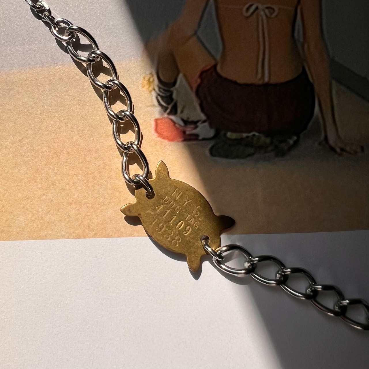 チェーンにVintage tagをチャームとしてプラス
