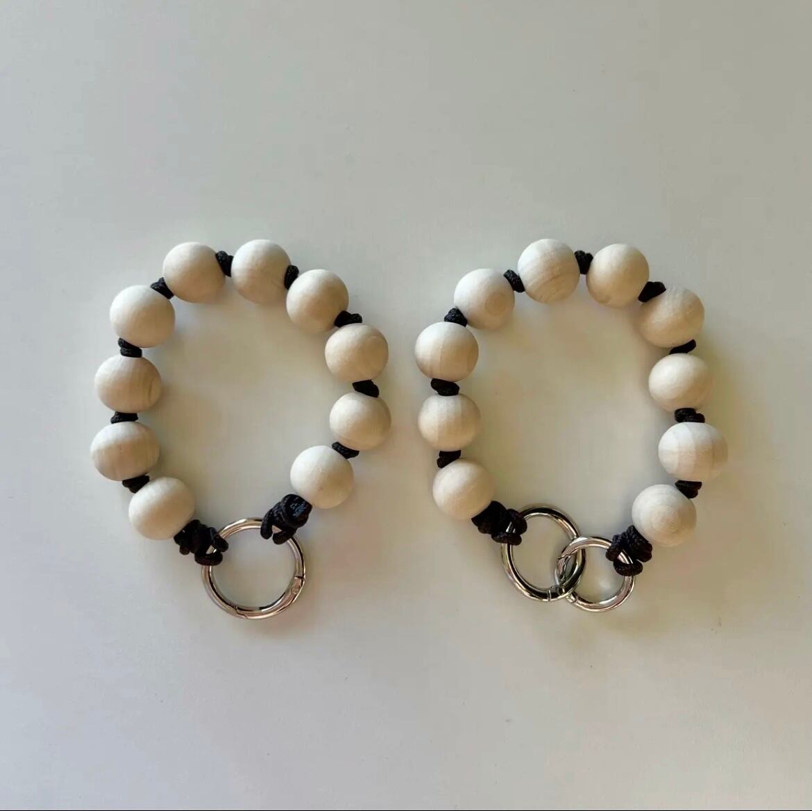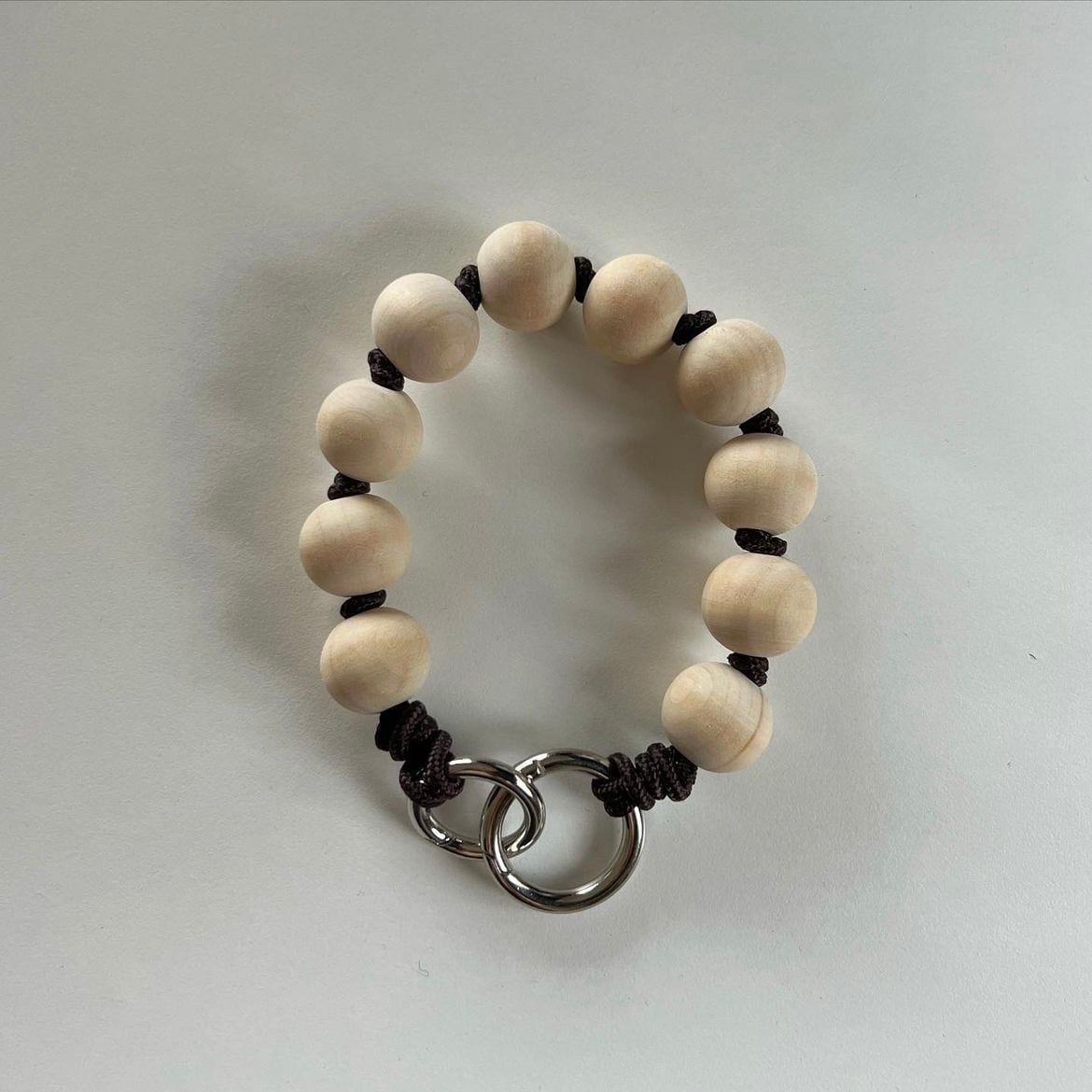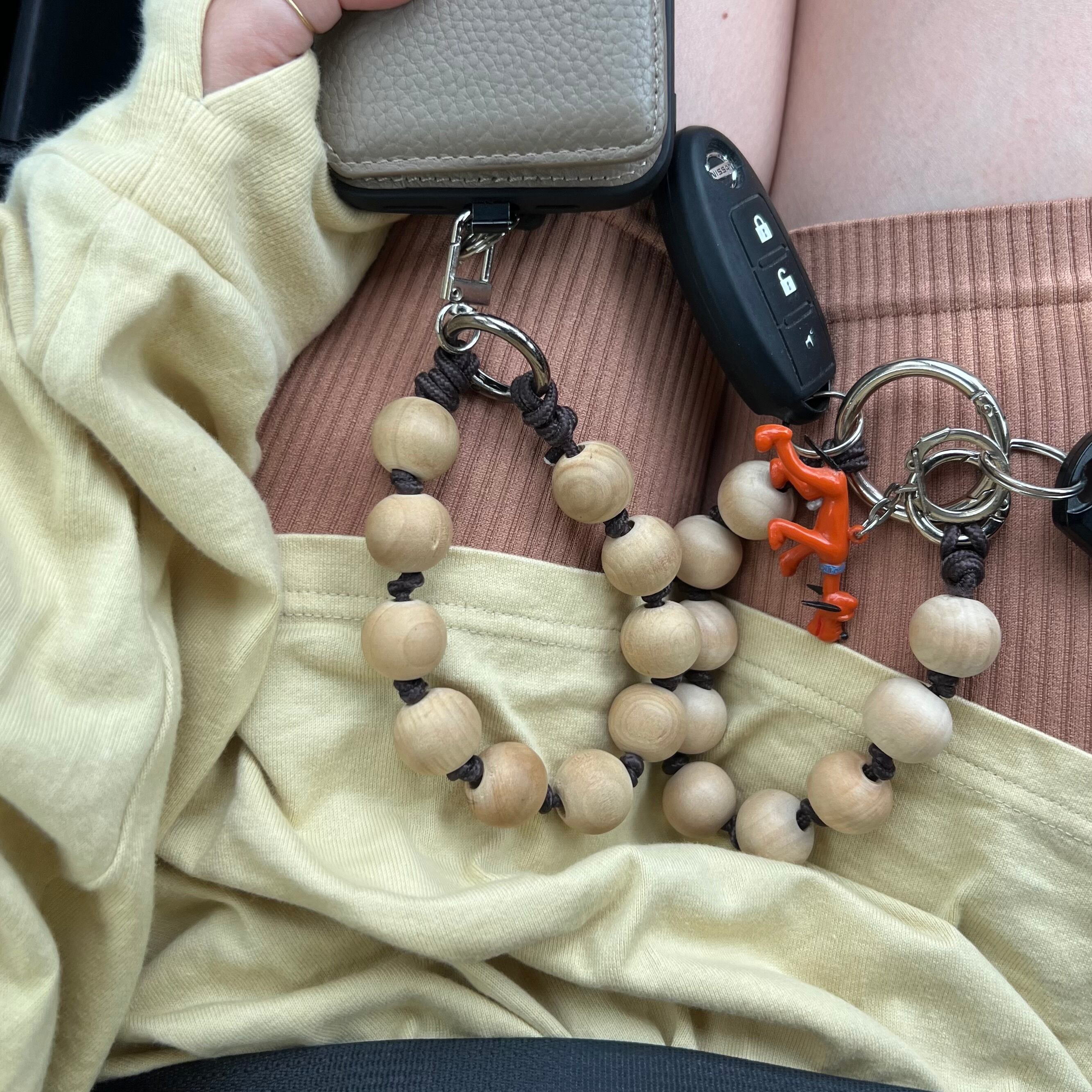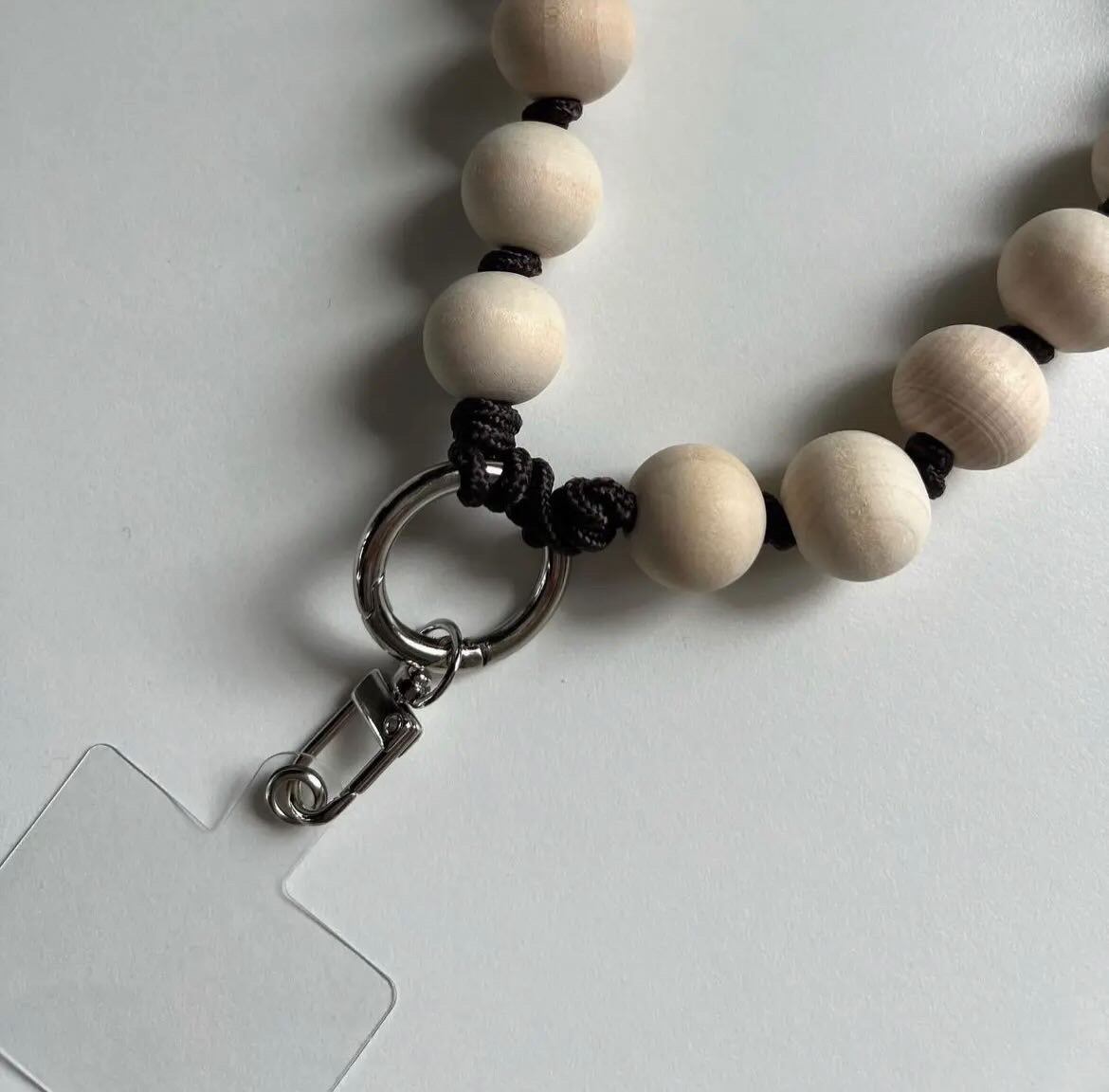 鍵や小物が付けられるストラップをちょっと大きめのwood ballで作りました。